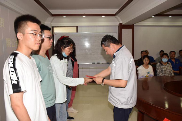 慶賀儀式上,學子們暢談學習心得、人生理想,感謝公司領導對他們的關懷和獎勵、感謝父母對他們的培養和教育,他們表示一定不會辜負社會、公司、學校以及同學老師們對他們的殷切祝福,在新的起點、新的學業上要取得更好的成績來回報社會、回報大家。學生家長代表對孩子們在學習中的刻苦和堅持表示肯定和欣慰,并對企業關心員工及員工家庭表示深深的感謝,還不忘叮囑孩子們:“公司養育了我們也養育了你們,你們一定要用好成績來回報公司”。與此同時,公司領導分別對各學子頒發了助學資金,并向職工表示祝賀。